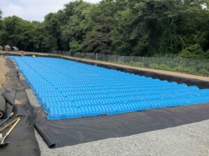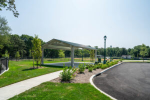 After implementing the new system into Whelan Field, H2M also designed and oversaw major renovations to the parkland, including two new baseball fields, a walking path with educational signage and exercise stations, a pavilion, and a dog park with sections for both large and small dogs.
